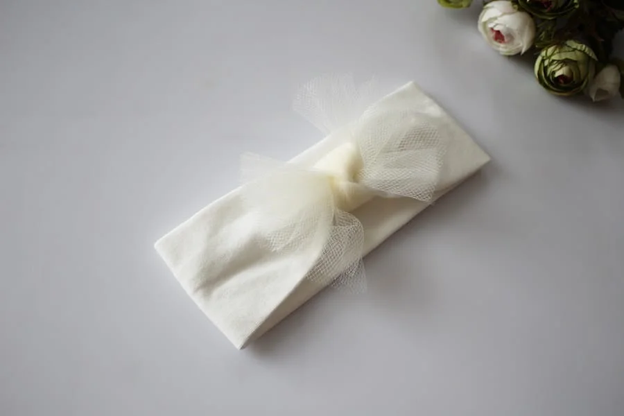 Opaska z kremowa z tiulową kokardą chrzest