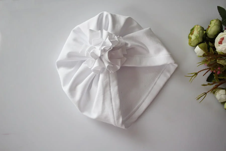 Turban wiosna/jesień biały kwiat chrzest