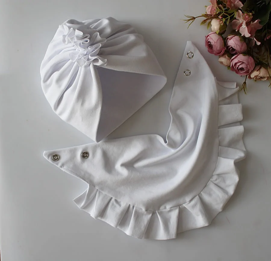 Zestaw czapka +chusta falbanka biel wiosna jesień chrzest