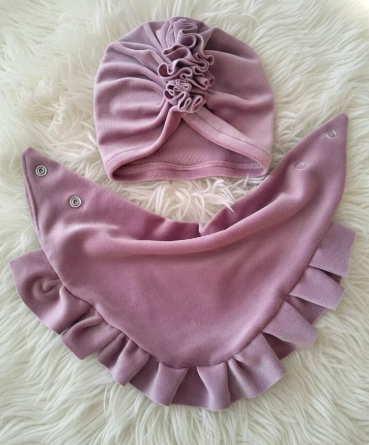 Zestaw turban +chusta falbanka welur brudny róż wiosna /jesień przejściowy
