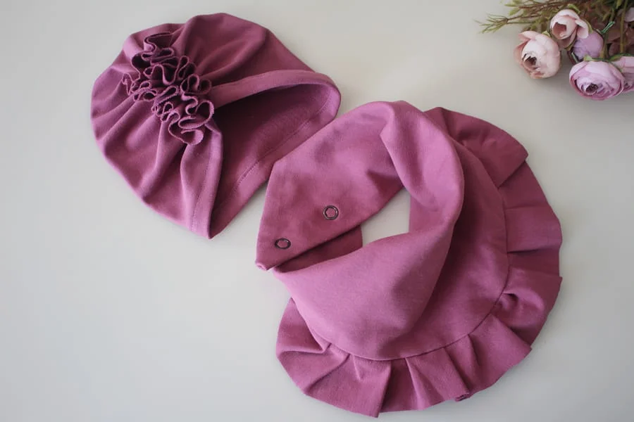 Zestaw turban +chusta falbanka wiosna /jesień wrzos