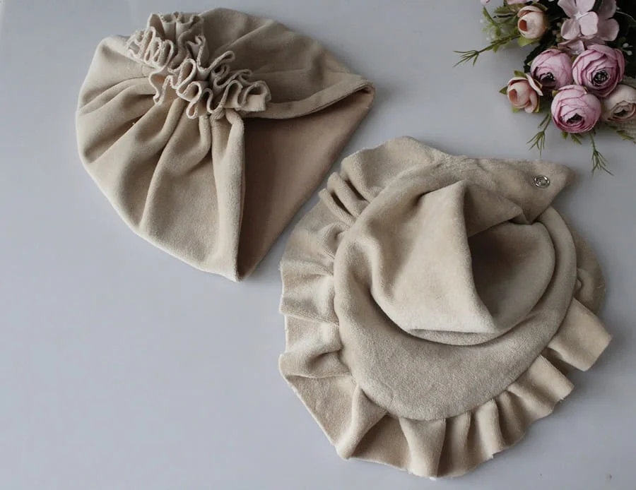 Zestaw turban +chusta z falbanka beż welur wiosna jesień