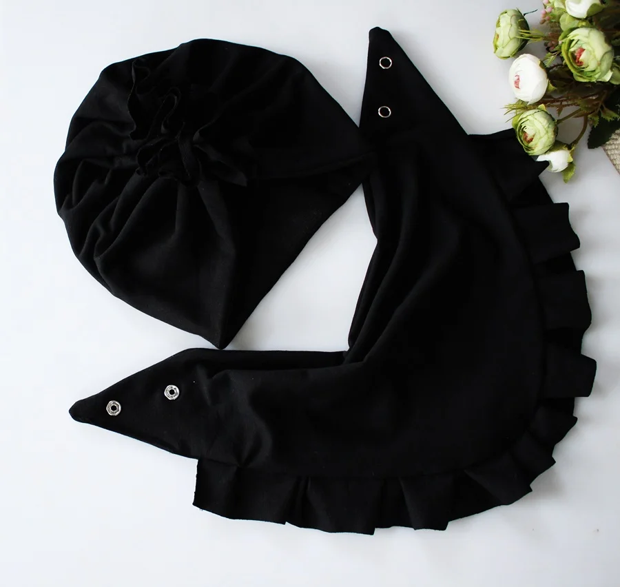 Zestaw turban +chusta z falbanką czerń czarny zima