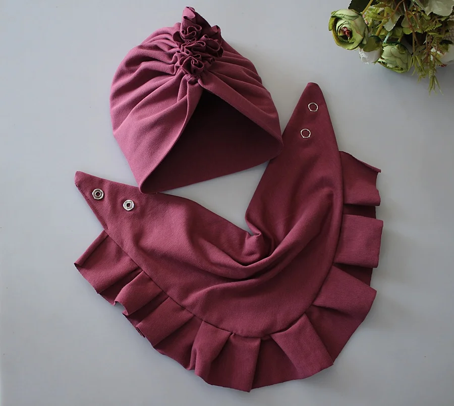 Zestaw turban podwójny +chusta wrzos wiosna /jesień
