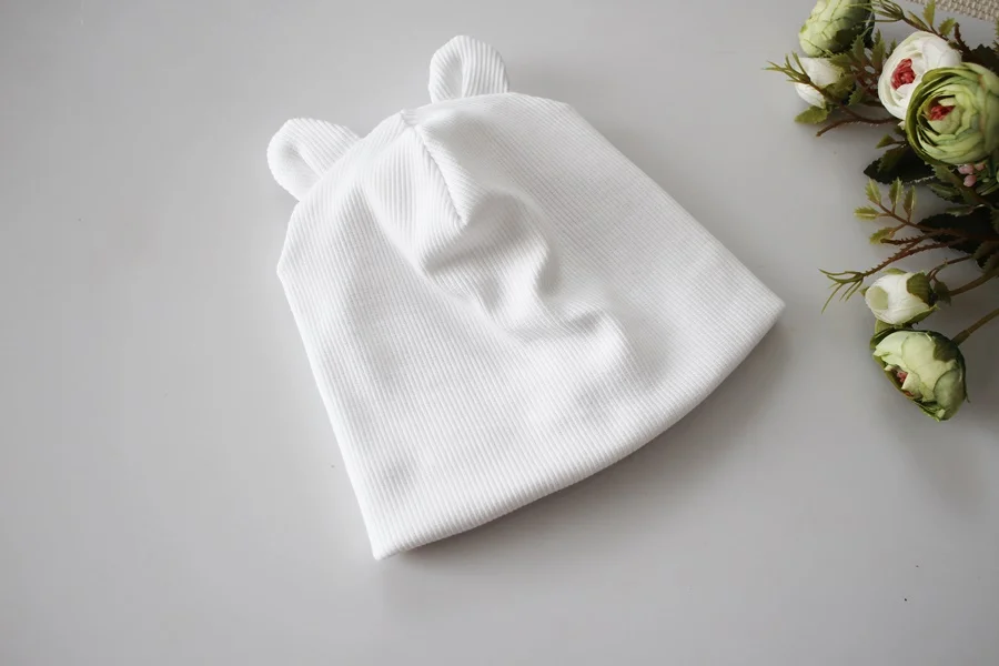 Czapka podwójna prążek biała uszka chrzest wiosna/jesień