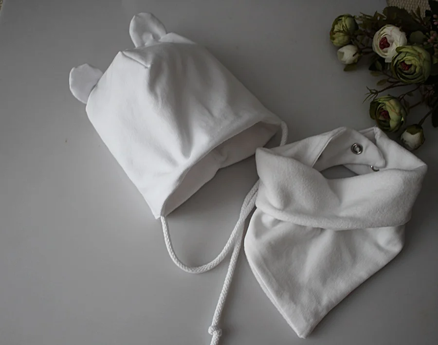 Zestaw czapka uszka troczki +chusta biel zima chrzest