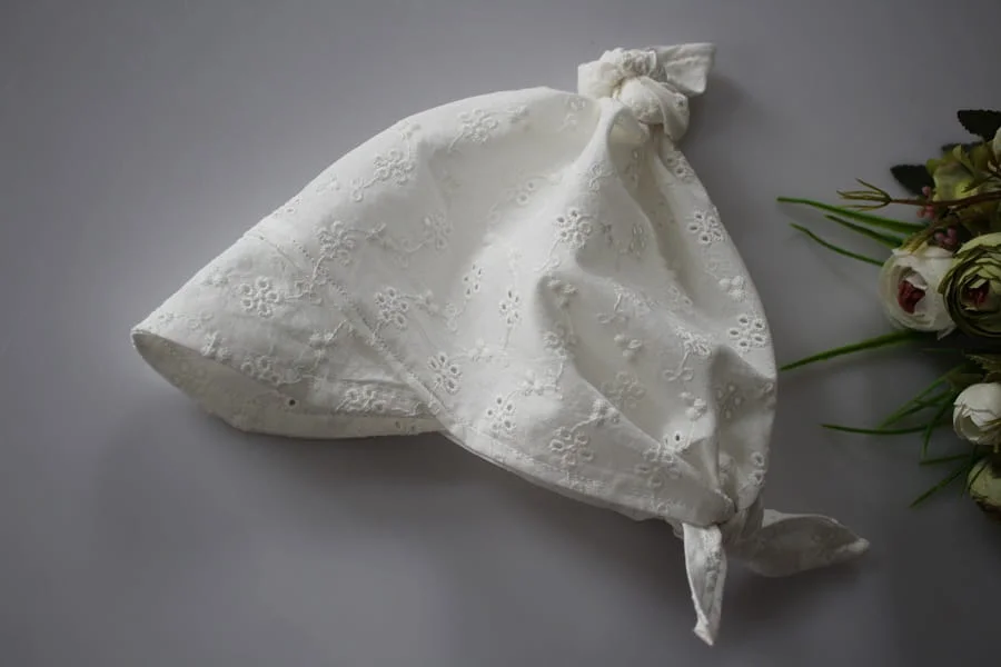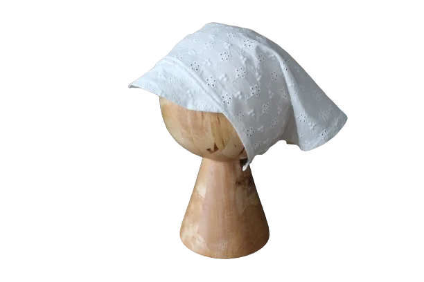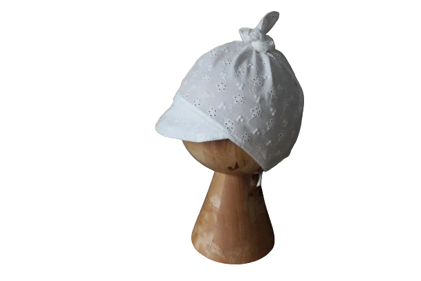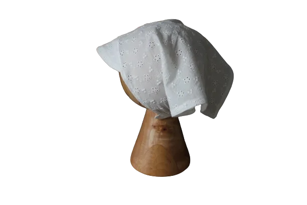 Chustka z daszkiem ażurowa bawełna kwiatuszki hafty kremowa