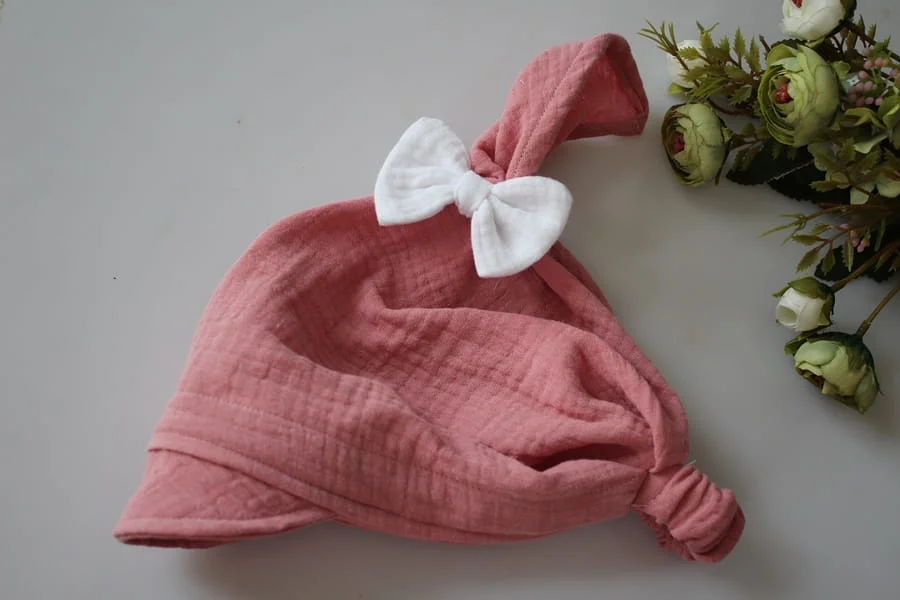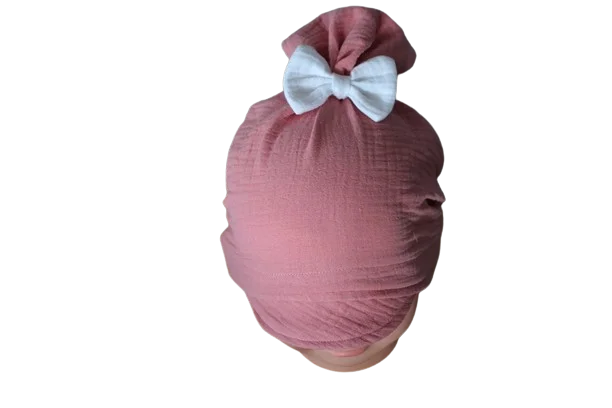 Chustka z gumką daszek muślin kokardka brudny róż