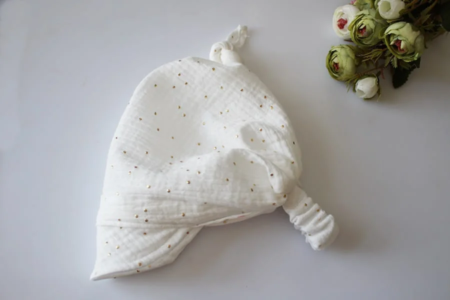 Gumka sprawia że dziecko moze wygodnie spać, a supełek wiążący chustkę go nie uciska