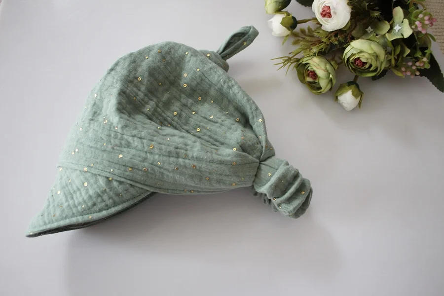 Chustka z gumką daszek muślin złote plamki na mięcie