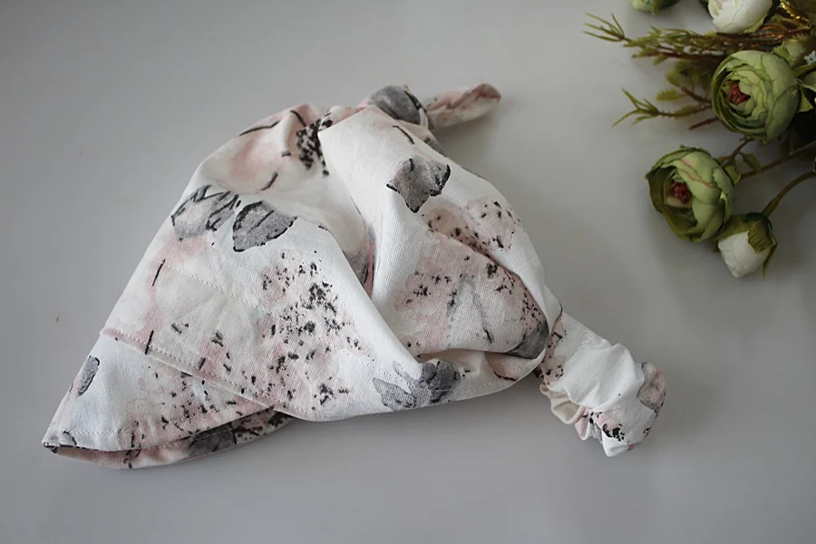 Chustka z gumką daszek pastelowe kwiaty bawełna