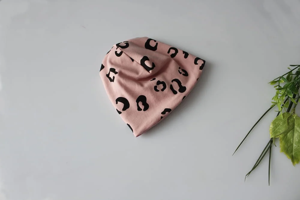 Czapka podwójna panterka brudny róż wiosna/jesień