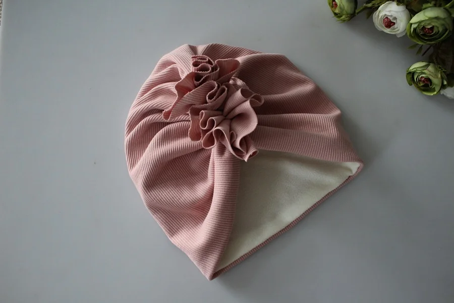 Czapka turban podwójny prążek brudny róż zima