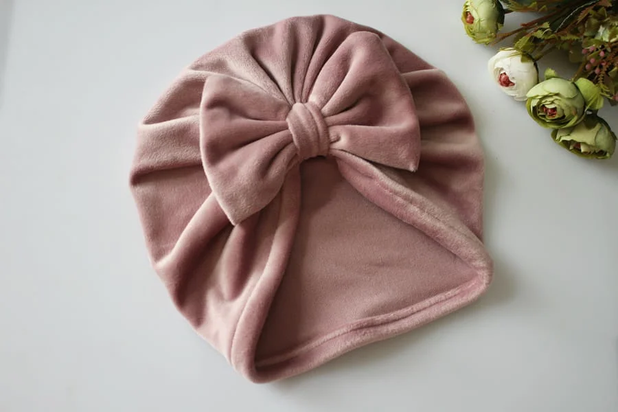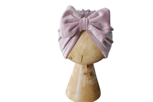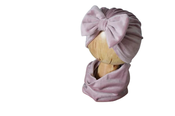 Czapka turban welur brudny róż kokarda wiosna/jeień