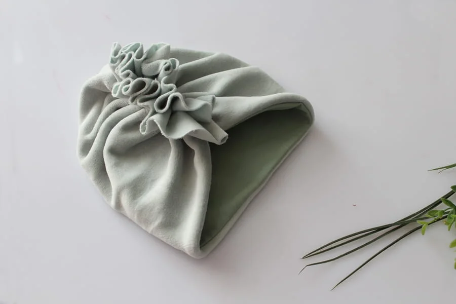 Czapka turban welur pastelowa mięta podwójny wiosna/jesien