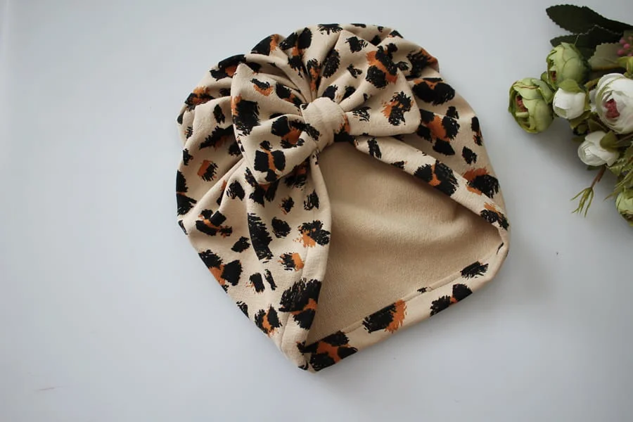 Turban panterka beż wiosna/jesień kokarda