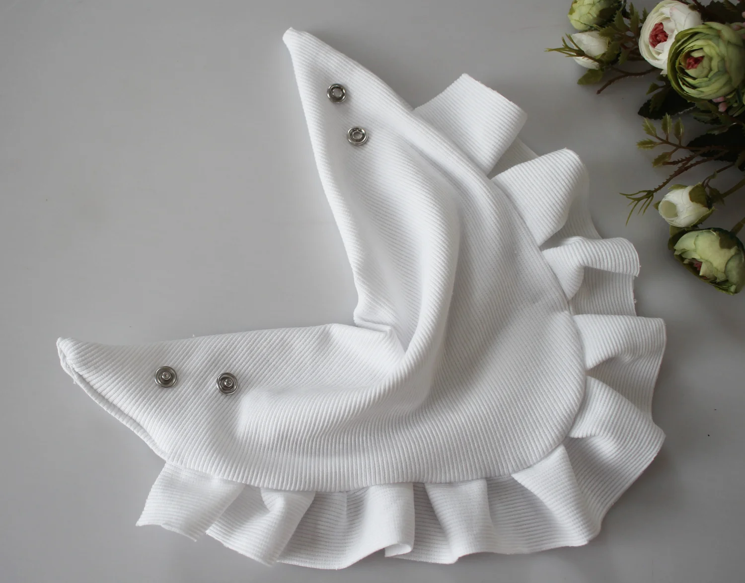 Chusta bawełna podwójna z falbanką prążek biała chrzest