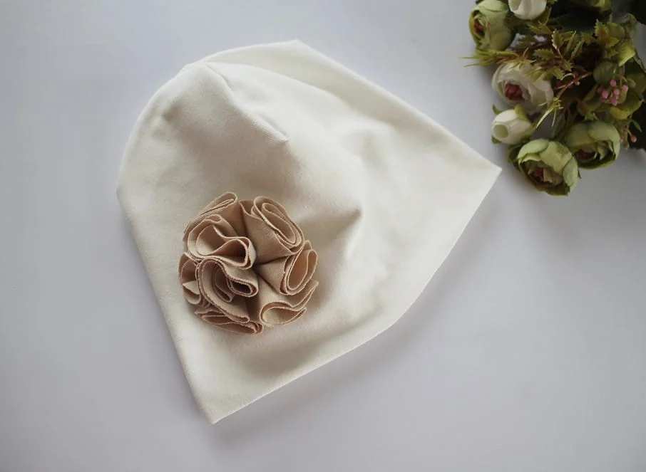 Czapka podwójna kremowa z beżowym kwiatuszkiem