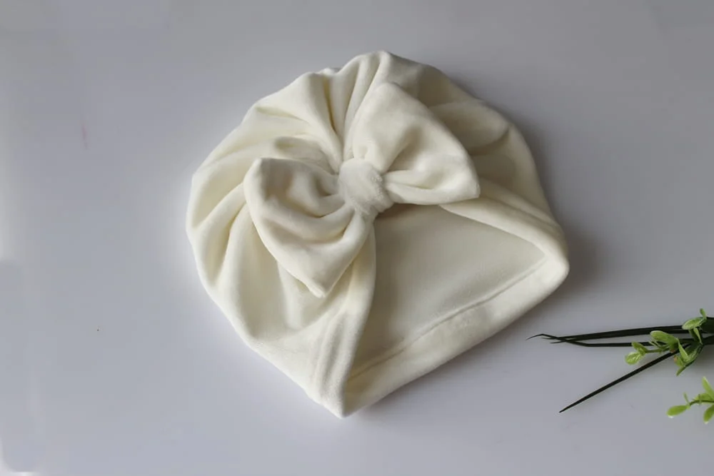 Czapka turban welur ecru kokarda chrzest przejściowa wiosna/jesień