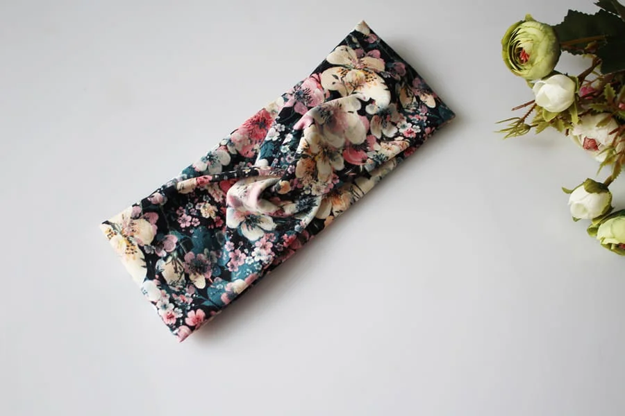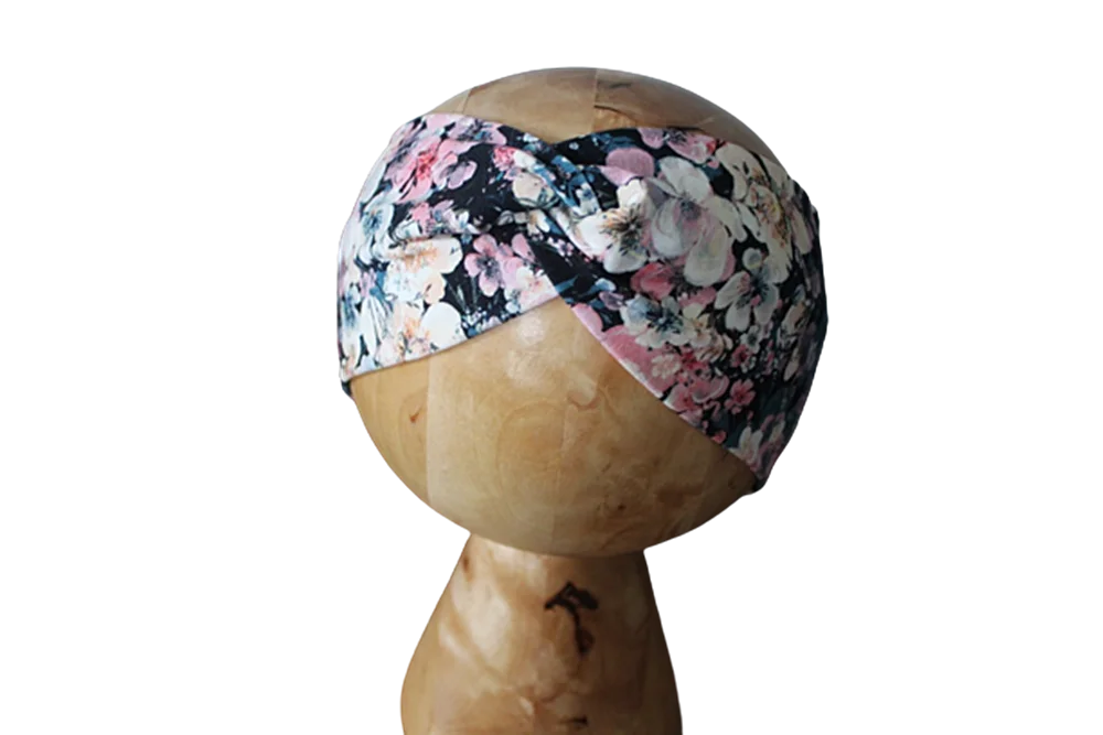Opaska przeplatana kwiatuszki na granacie rozmiary