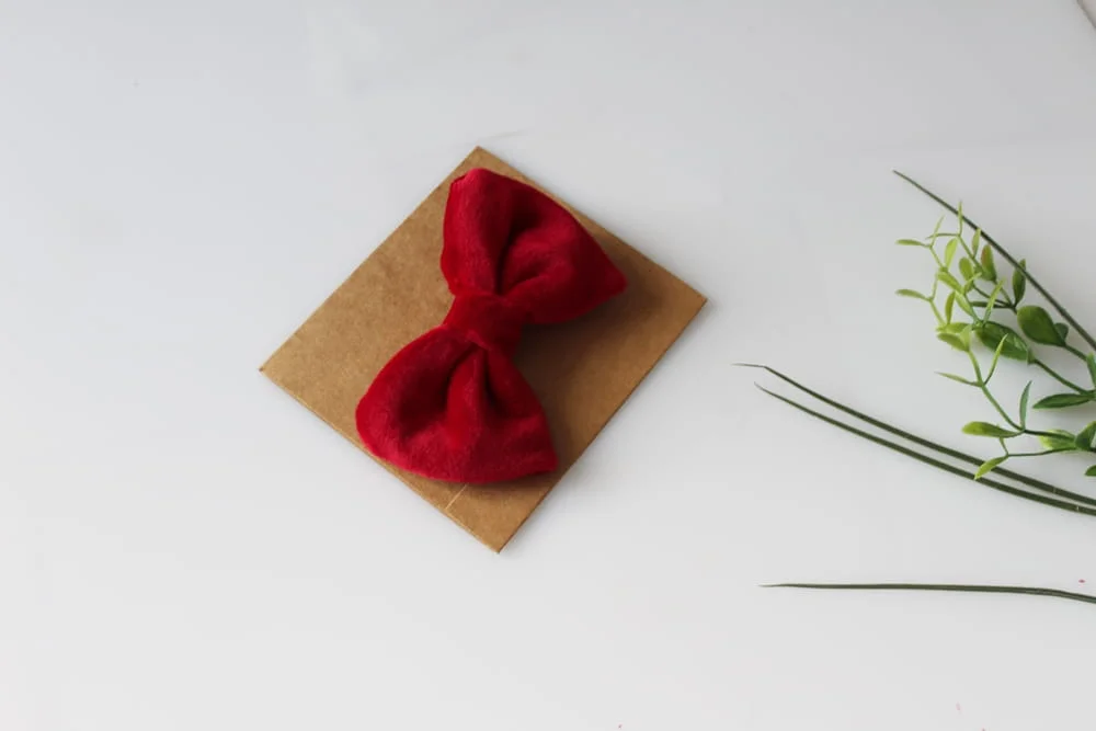 Spinka z kokardą wykonaną z weluru