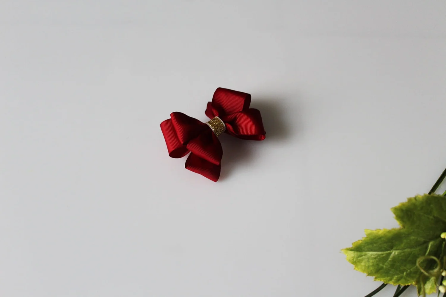 Spinka z kokardą wykonaną z rypsowej wstążki.