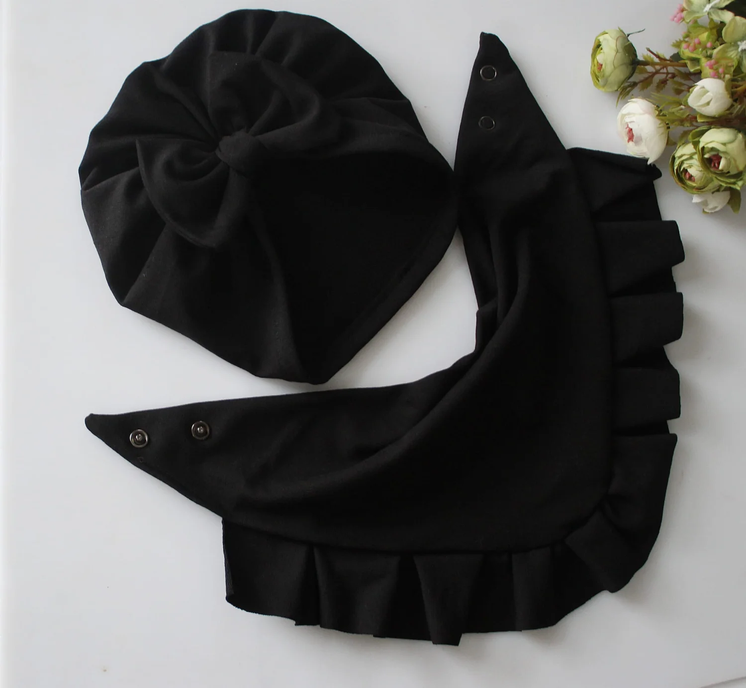 Zestaw czapka kokarda +chusta falbanka wiosna /jesień czerń