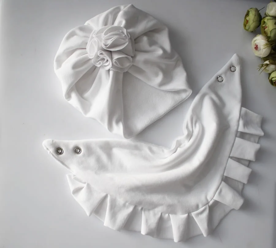 Zestaw czapka kwiat +chusta z falbanką biel zima