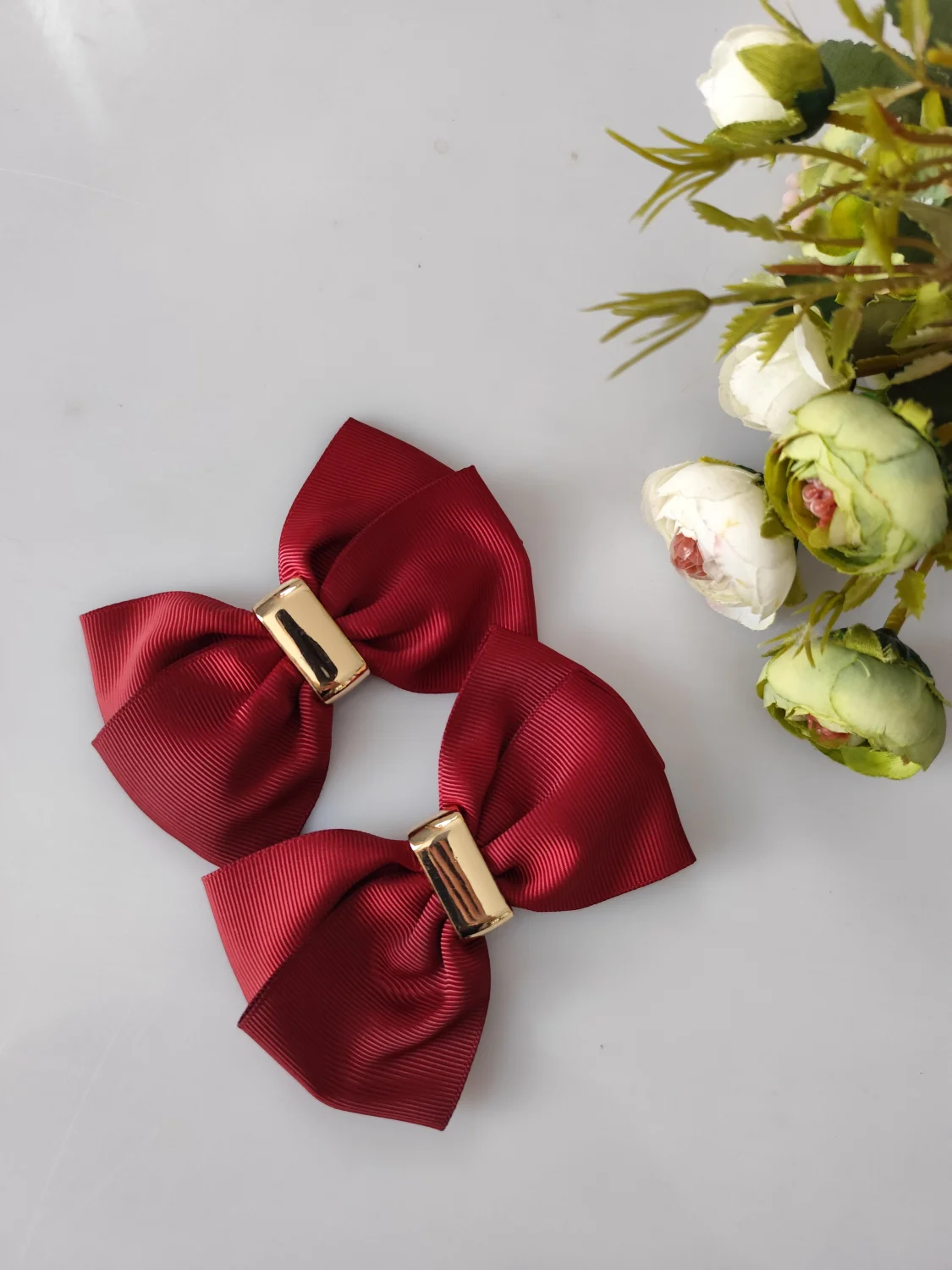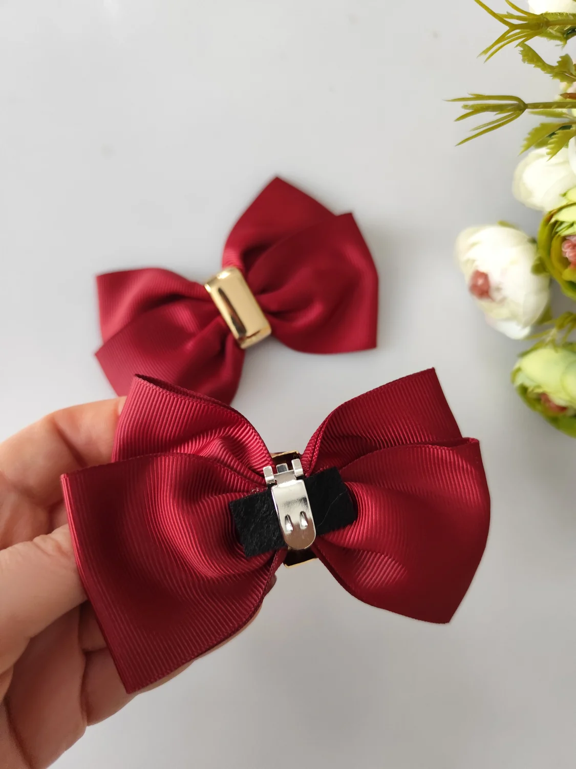 Klipsy Dopinki do butów kokardy bordo ze złotem 2 szt zestaw