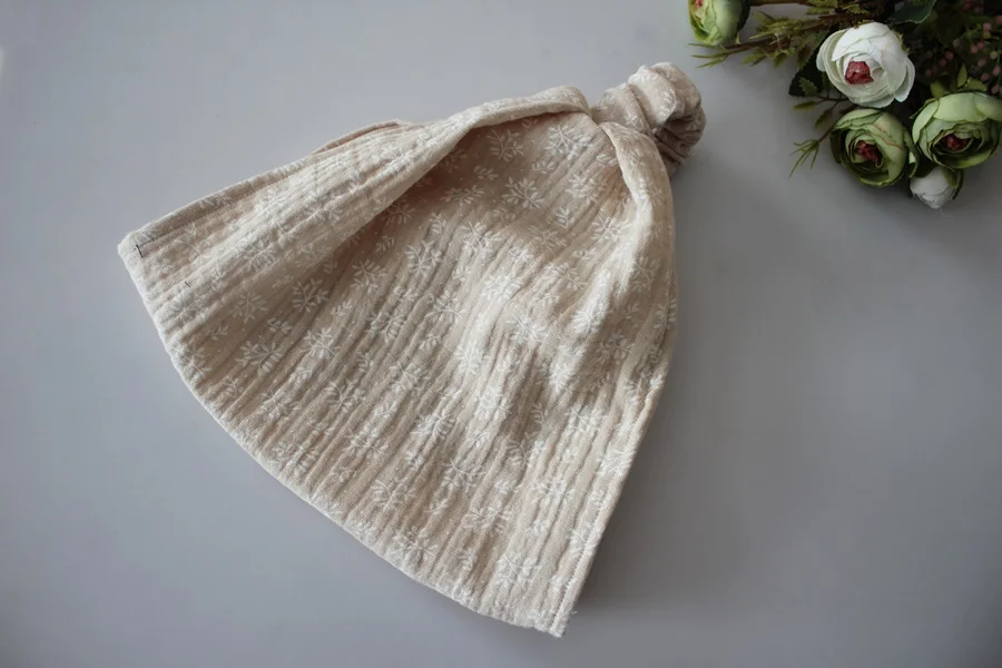 Chustka z gumką muślin kwiatuszki na beżu rozmiary