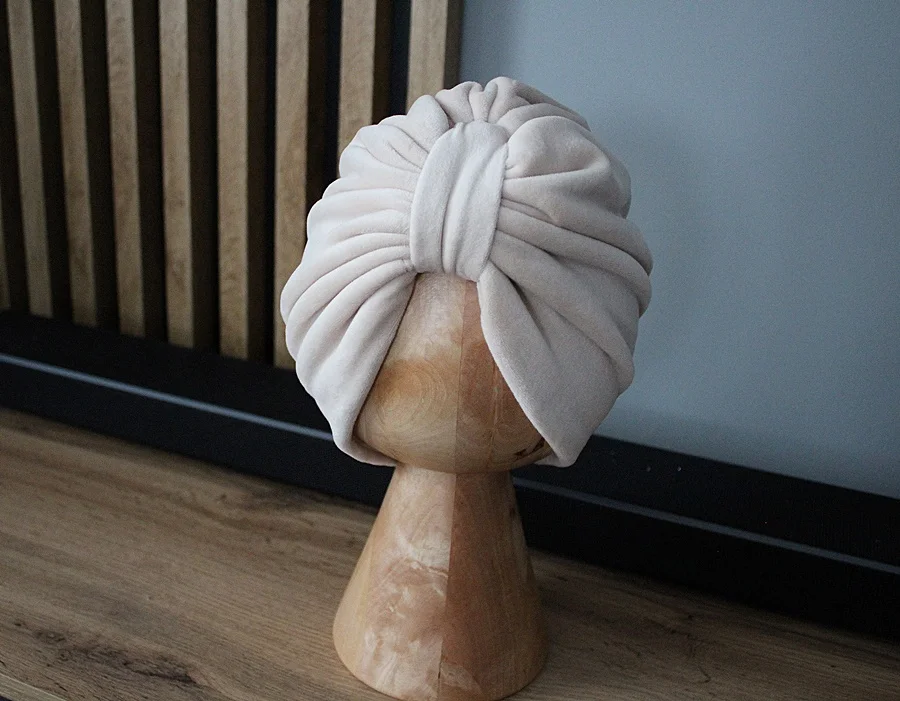 Turban welur zima polar jasny bez pastylka damski