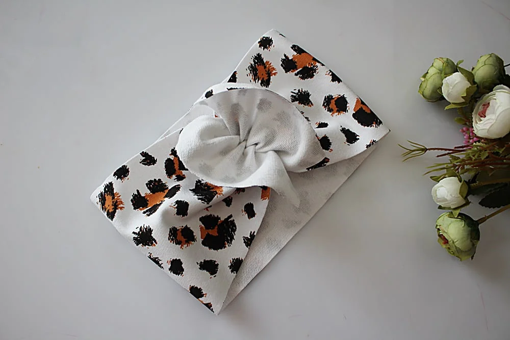 Opaska szeroka falbanka turban panterka na bieli dziecko