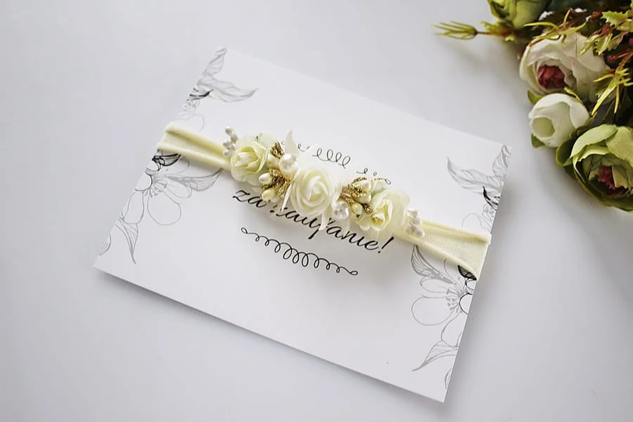 Opaska wianuszek kwiatuszki ecru krem chrzest
