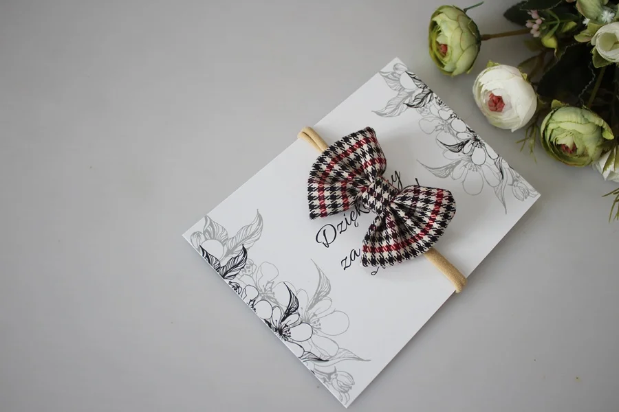 Opaska pepitka czerwono czarna kokardka
