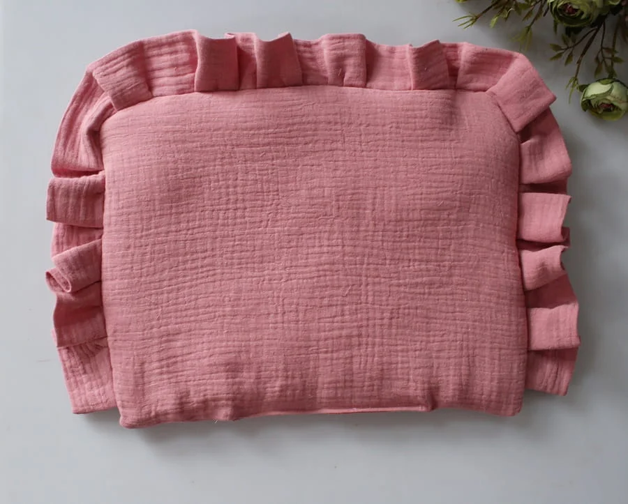 Poduszka brudny róż muślinowa falbanka wózek kołyska