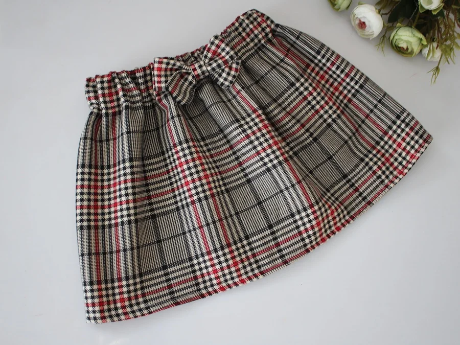 Spódniczka kokardka krata beżowo czerwona