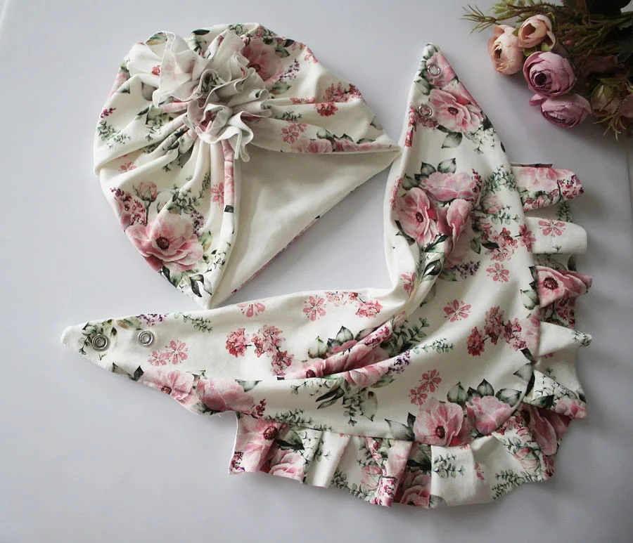 Zestaw turban podwójny +chusta bukieciki kwiatów wiosna /jesień