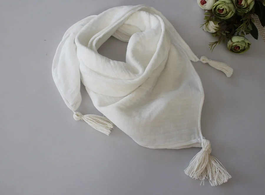 Chusta muślin kwadrat chwosty kremowa
