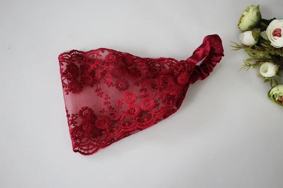 Chustka z gumką koronka czerwone wino damska