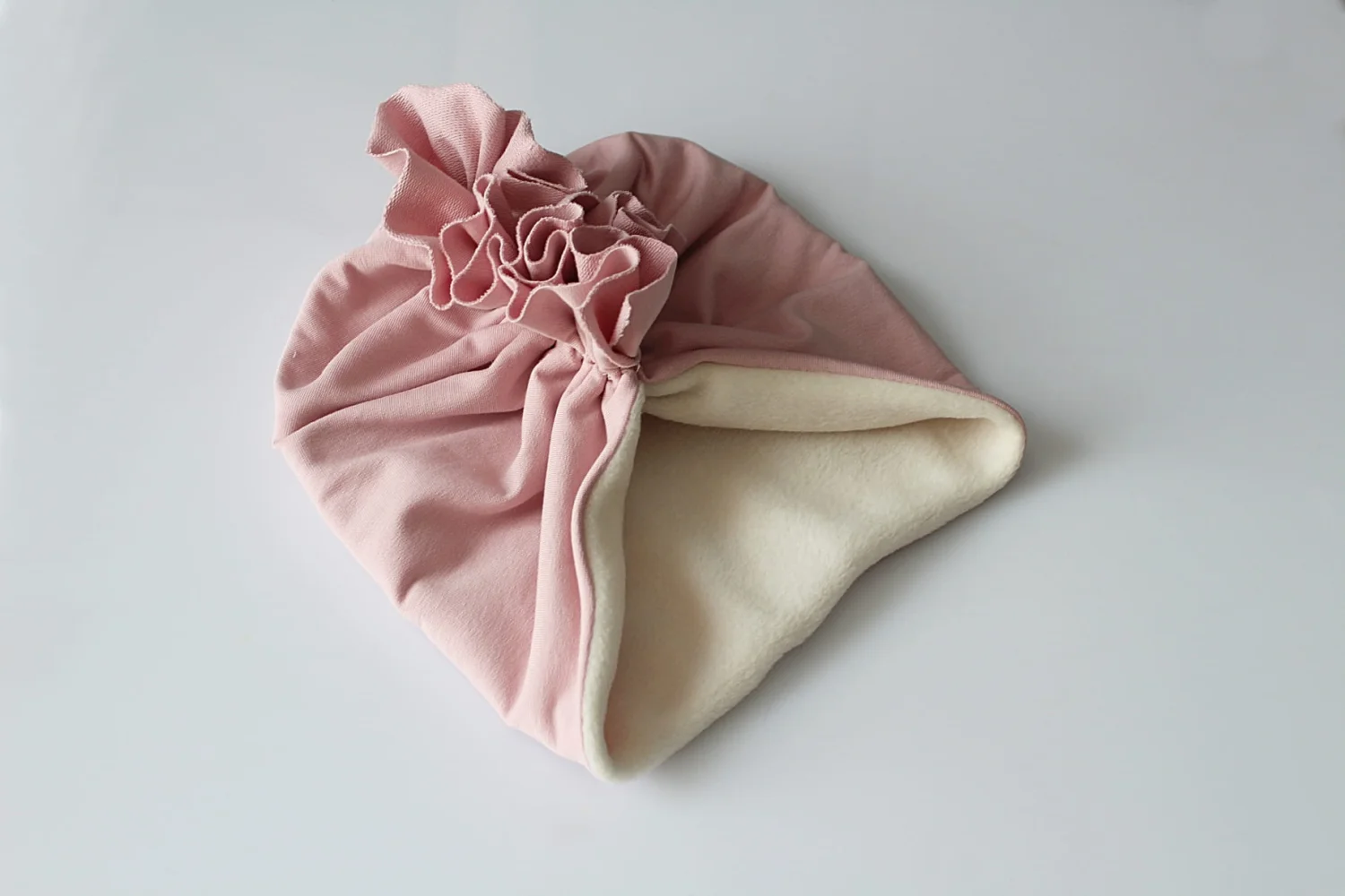 Turban wykonany jest z dzianiny bawełnianej oraz polaru