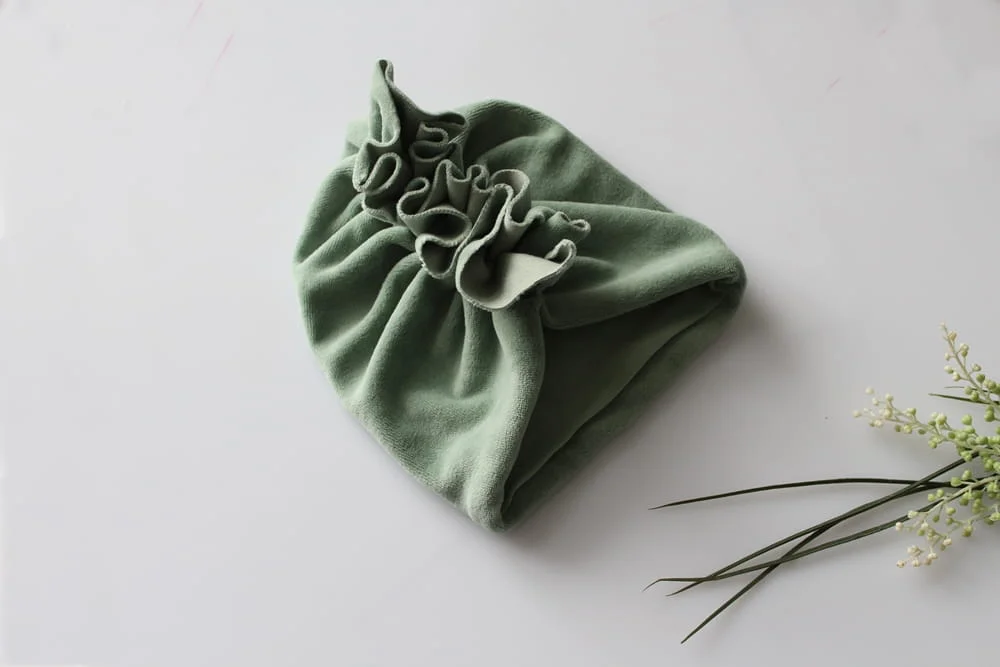 Czapka turban welur brudna mięta podwójny wiosna/jesień