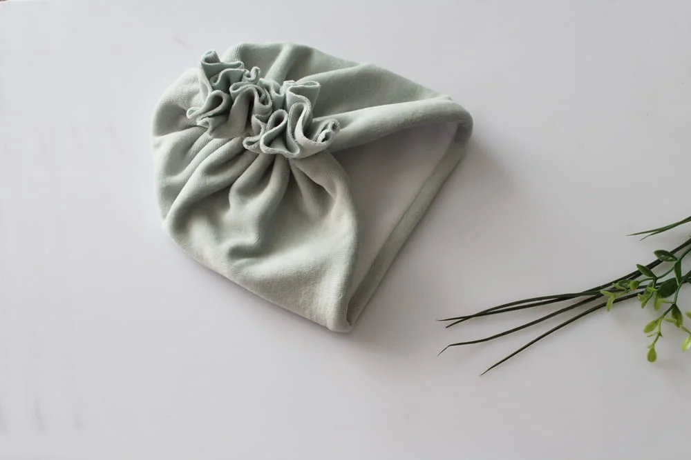 Czapka turban welur pastelowa mięta polar zima
