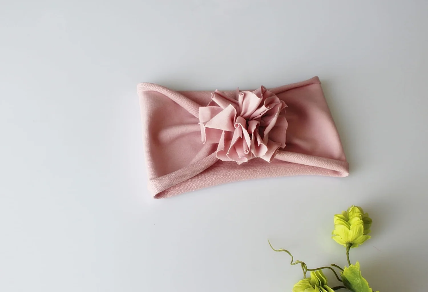 Opaska szeroka kwiat turban brudny róż