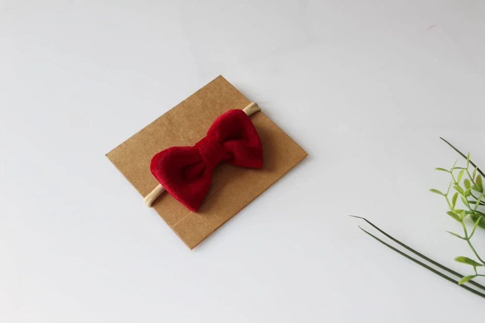 Opaska welurowa czerwona kokarda