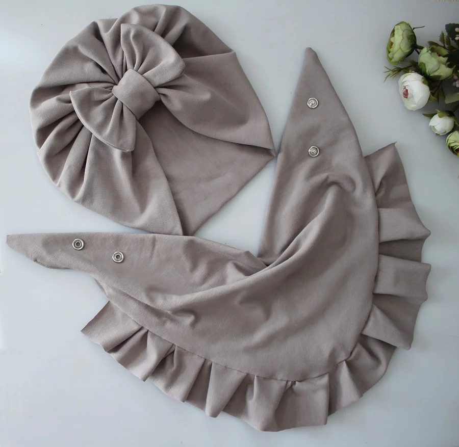 Zestaw czapka kokarda +chusta falbanka latte wiosna /jesień