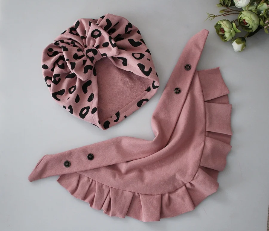 Zestaw czapka kokarda +chusta falbanka wiosna /jesień panterka chłodny róż