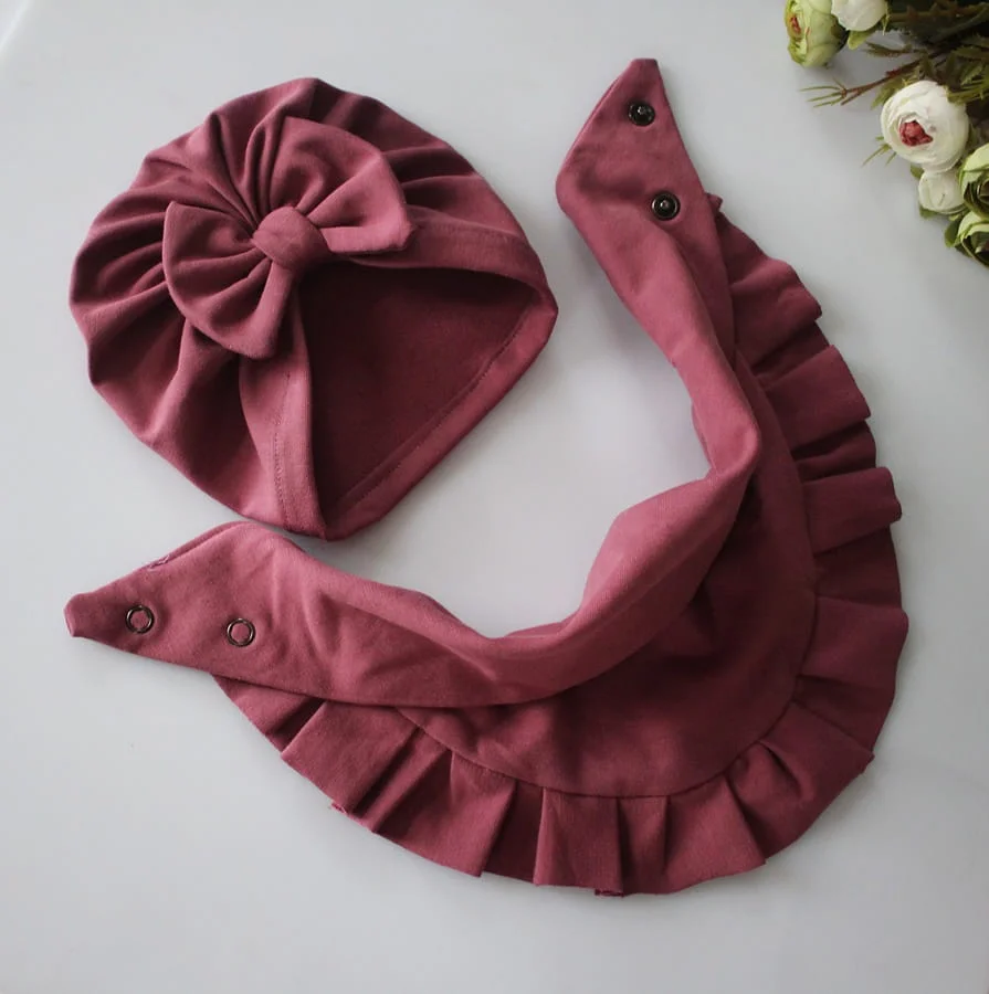 Zestaw czapka kokarda +chusta falbanka wiosna /jesień wrzos