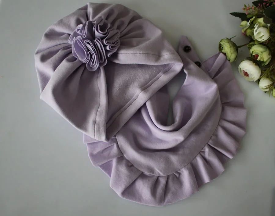 Zestaw czapka kwiat +chusta falbanka wiosna /jesień fiolet