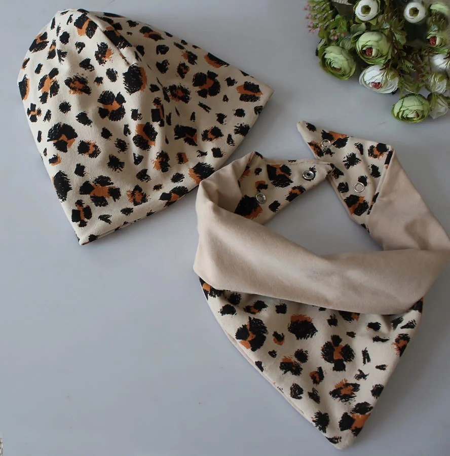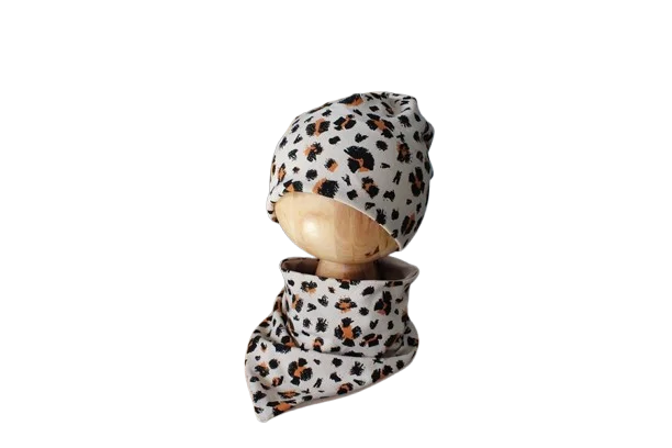 Zestaw czapka podwójna +chusta panterka wiosna/jesień