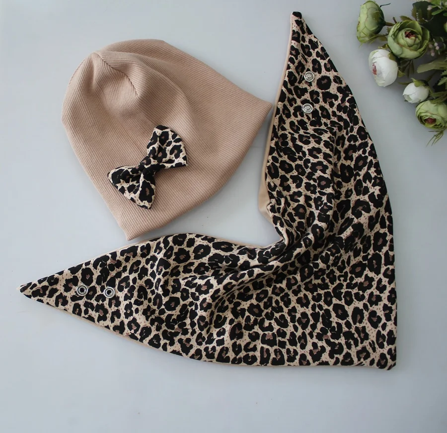 Zestaw czapka prążek +chusta gładka panterka wiosna /jesień